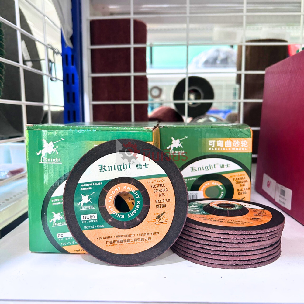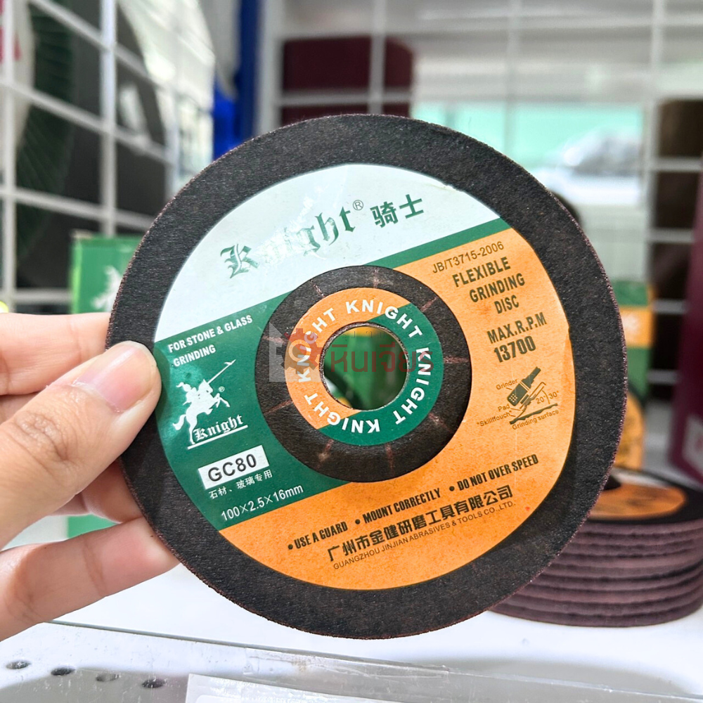 ชื่อสินค้า : ใบเจียรกระจก100x2.5x16 เบอร์ความละเอียด 80 และ 120 Knight ขนาด : โตนอก 4 นิ้ว หนา 2.5 มิล รูเพรา 16 มิล